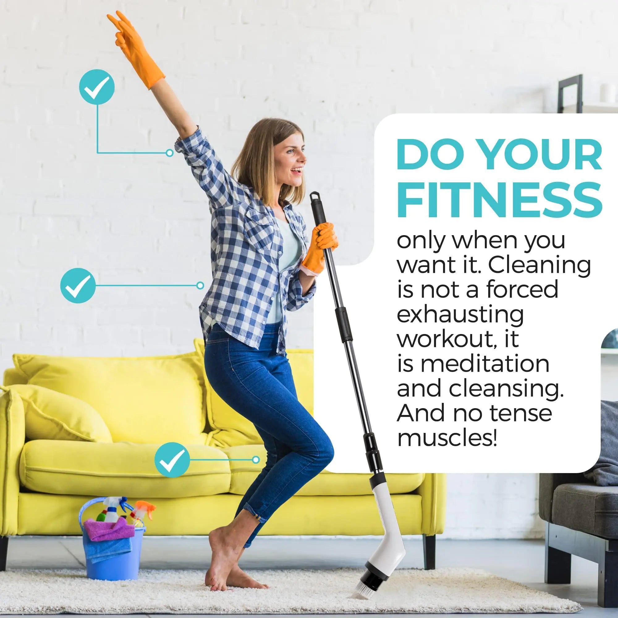 SHORT OR LONG? Size matters, but you have a choice. The length of the electric scrubber for bathroom is 12". But you can use the power scrubbers for cleaning bathroom with adjustable handle (42" or 51.6") and get to hard-to-reach places without having to bend over.